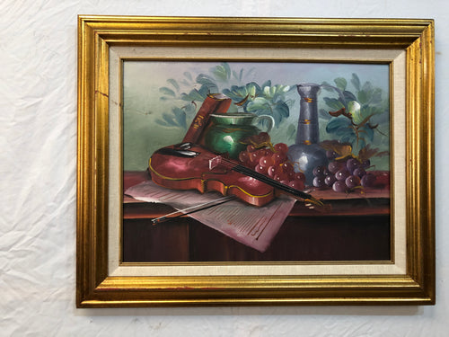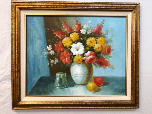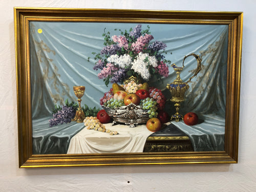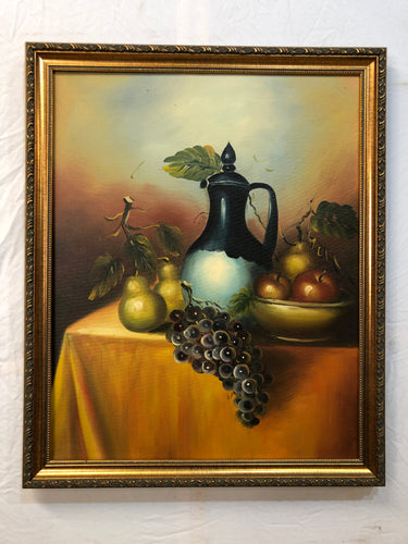 Still Life Vintage Oil on Canvas Signed on the Bottom