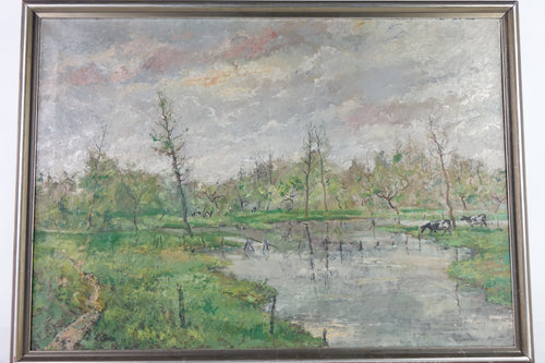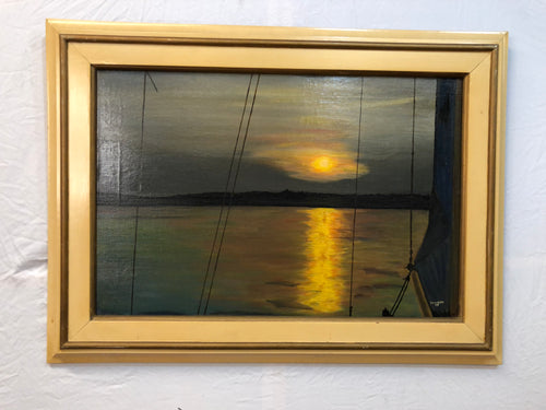 Sunset Original Oil on Canvas 1975 Signed on the Bottom