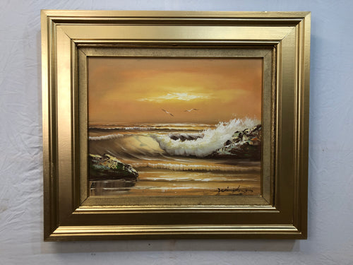 Sunset at the Ocean Oil on Canvas Signed at the Bottom