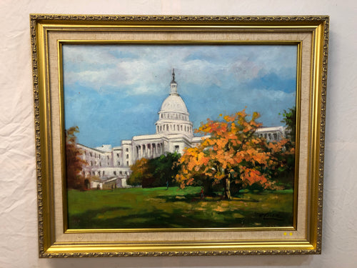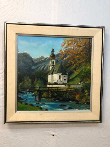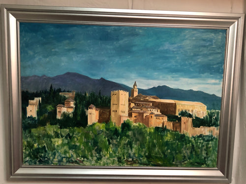 The Fortress Large Vintage Oil on Canvas Signed on the Bottom